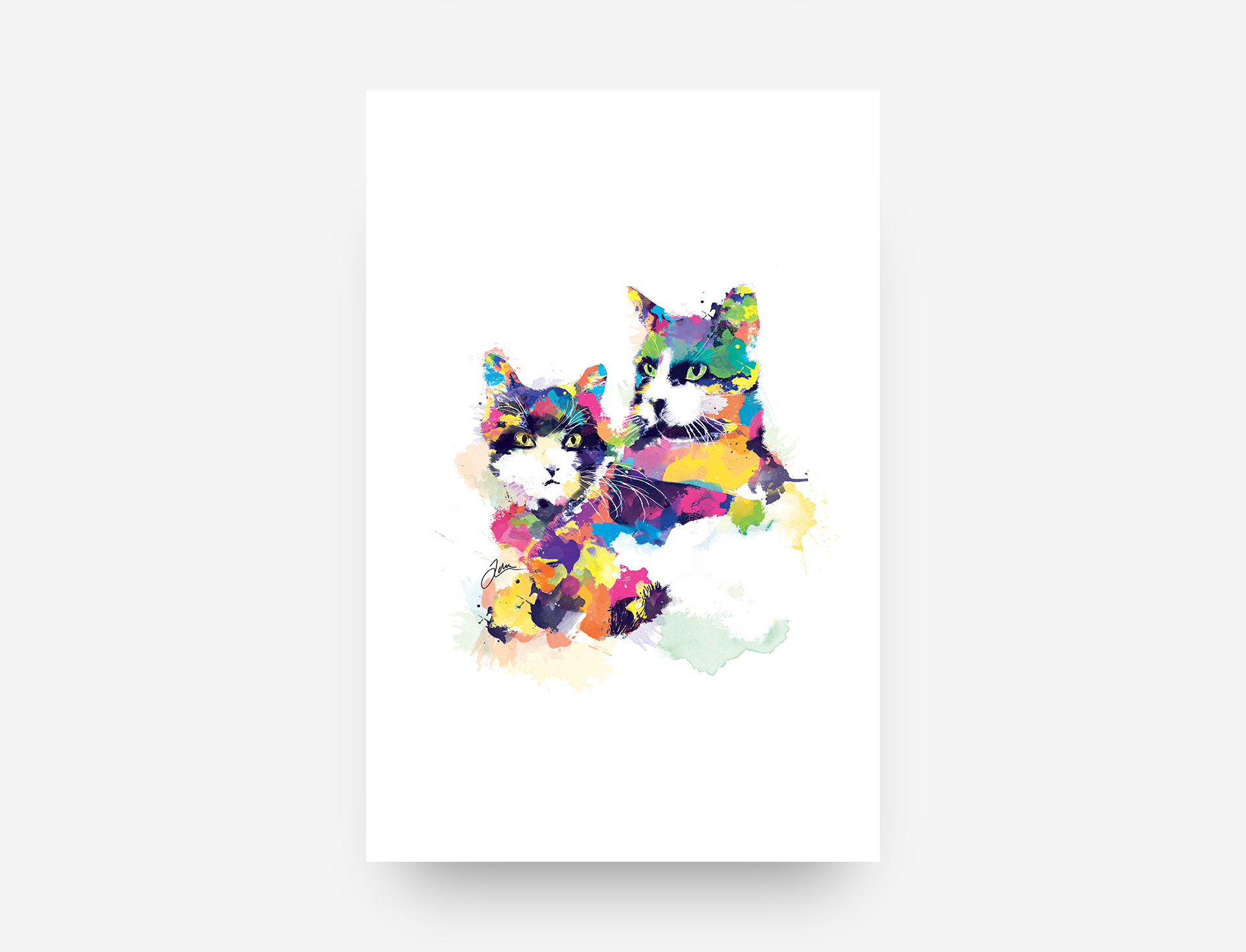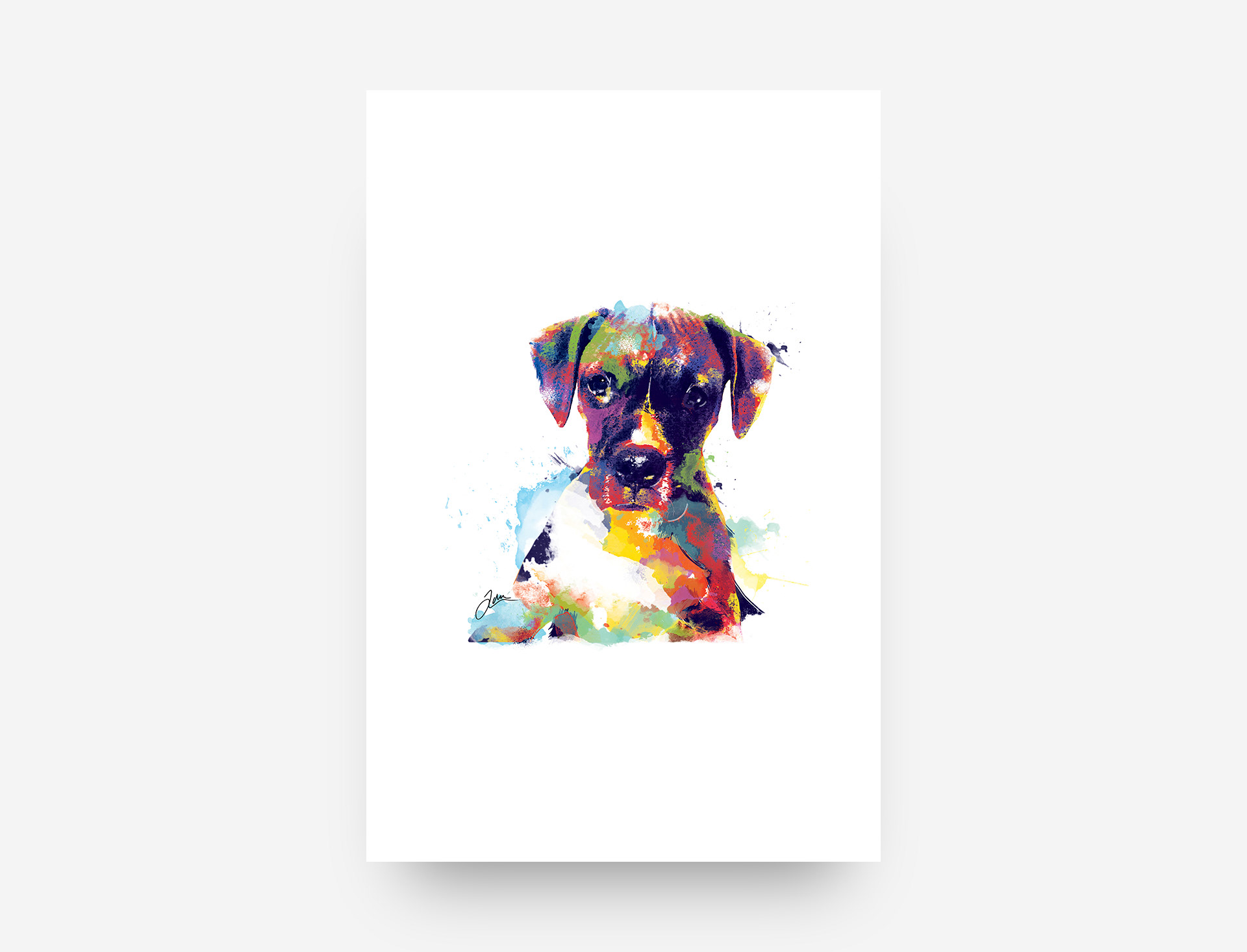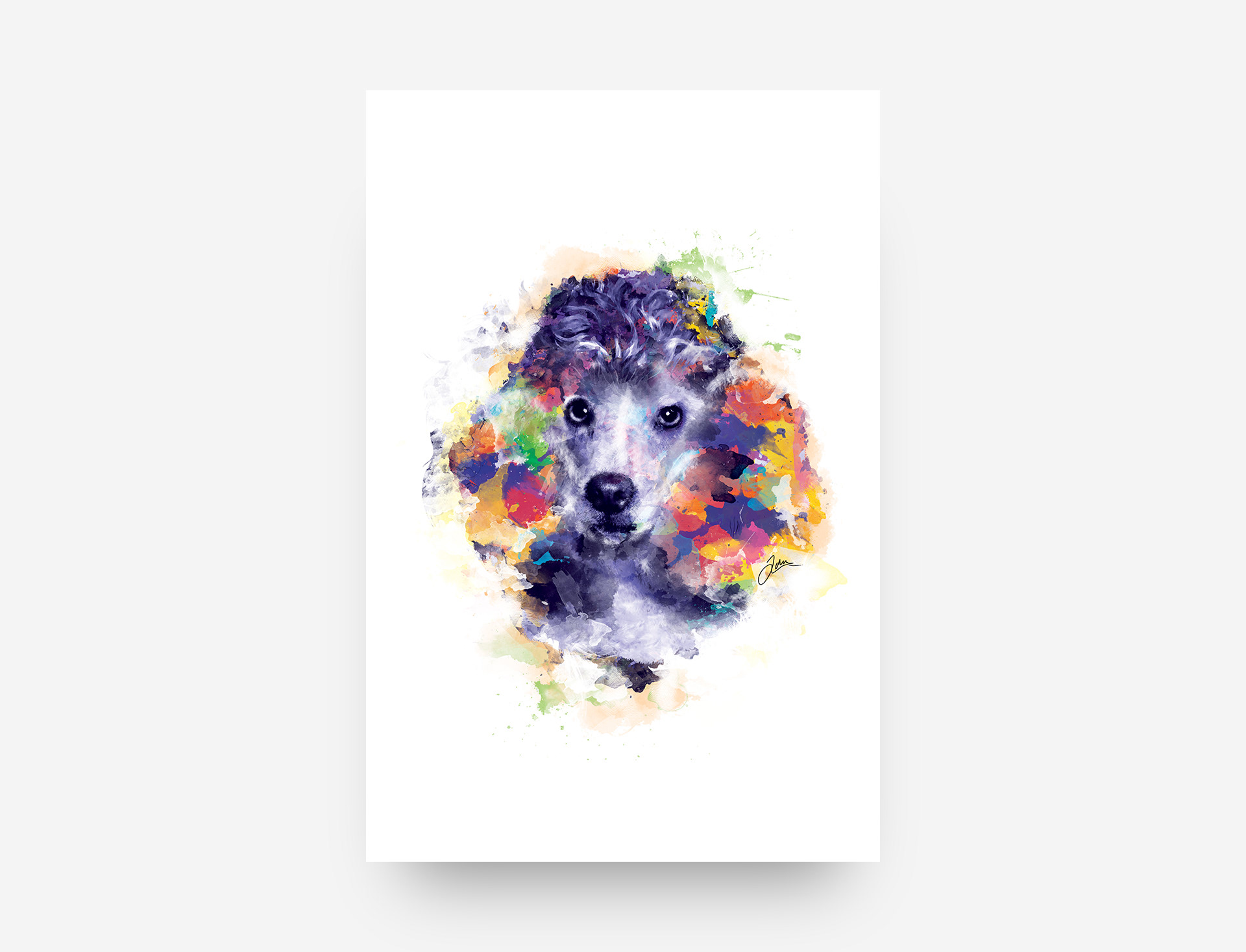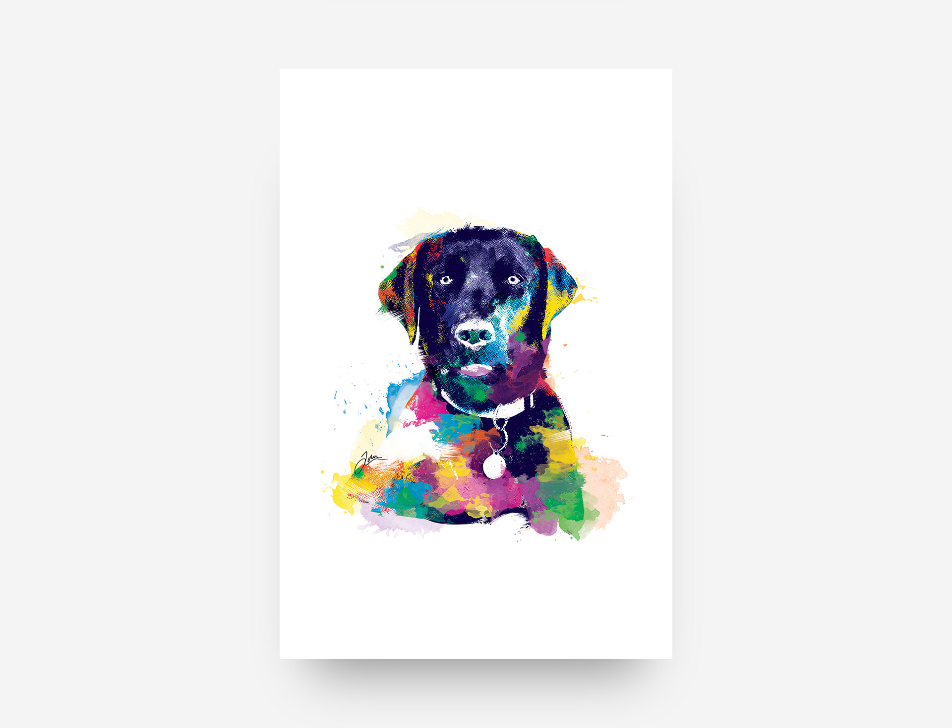 Watercolour pet portraits made in Photoshop.